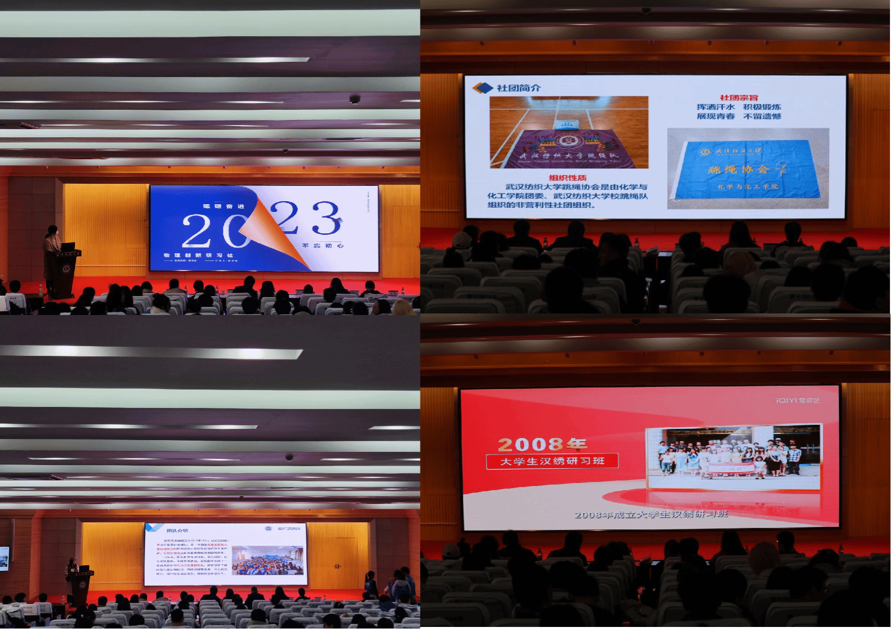 经过前期社团资料申报、资格审查、量化初评等阶段,共有12个社团进入答辩展示环节,涵盖学术类、兴趣类、志愿服务类、体育运动类、文化传播类等类别。各社团分别围绕社团管理、活动成效、所获荣誉、未来规划等方面进行汇报,在风采展示环节,有齐舞展示、环保快闪、花样跳绳、书法作品展演等多种形式,赢得评委和观众的阵阵掌声。