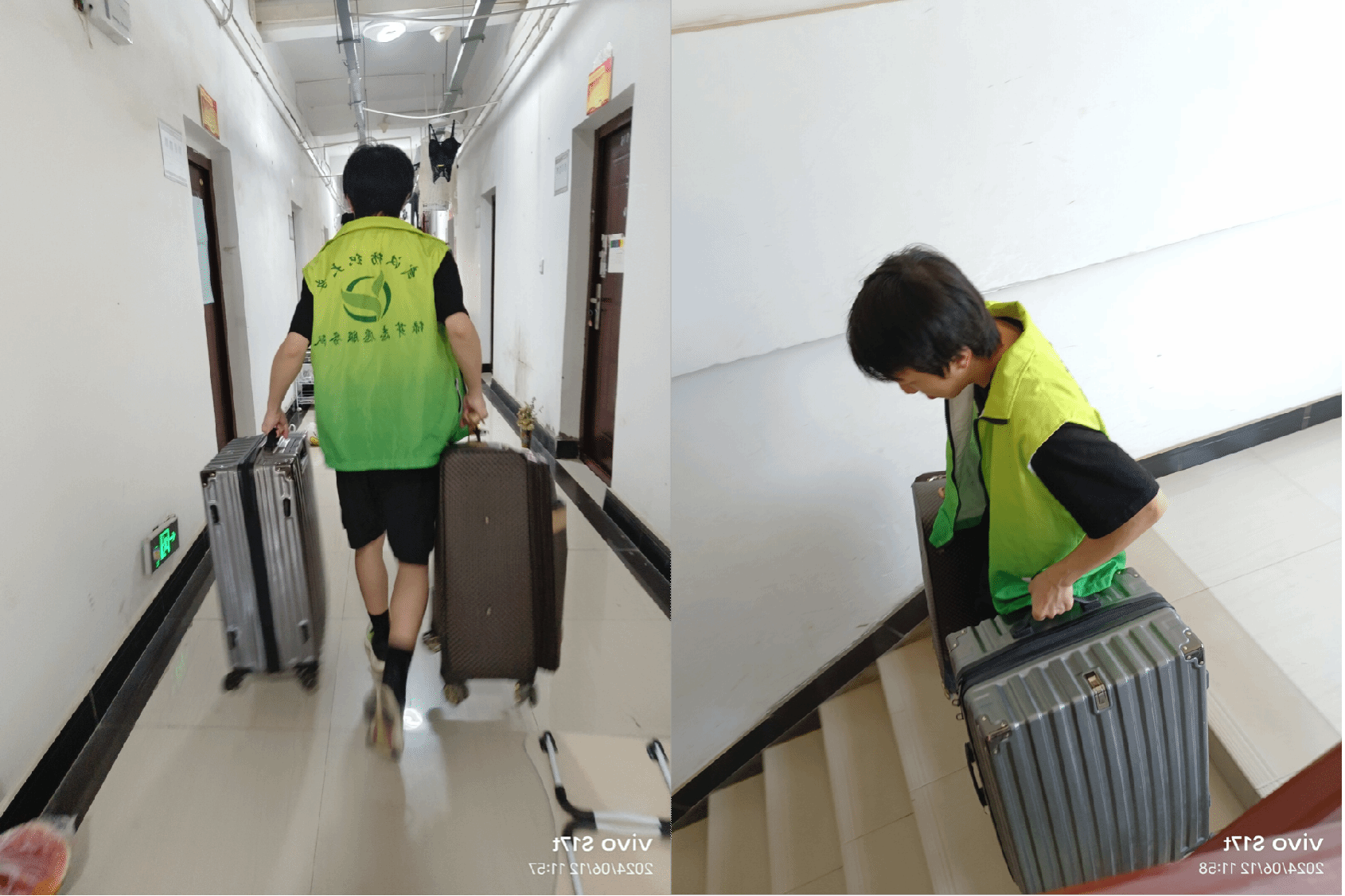 各宿舍楼学生一站式社区设置“绿色离校”服务点,来自不同学院的学生党员、积极分子参与到志愿者队伍,帮助毕业生运送行李至校门口或快递站点,帮助楼管阿姨打扫宿舍。炎炎夏日,骄阳似火,党员们在宿舍楼间来回穿梭,虽然他们忙得大汗淋漓,但热情丝毫不减,争分夺秒地不停搬运。他们用自己的付出,让毕业生感受到温暖与关心,发挥了党员先锋模范作用。