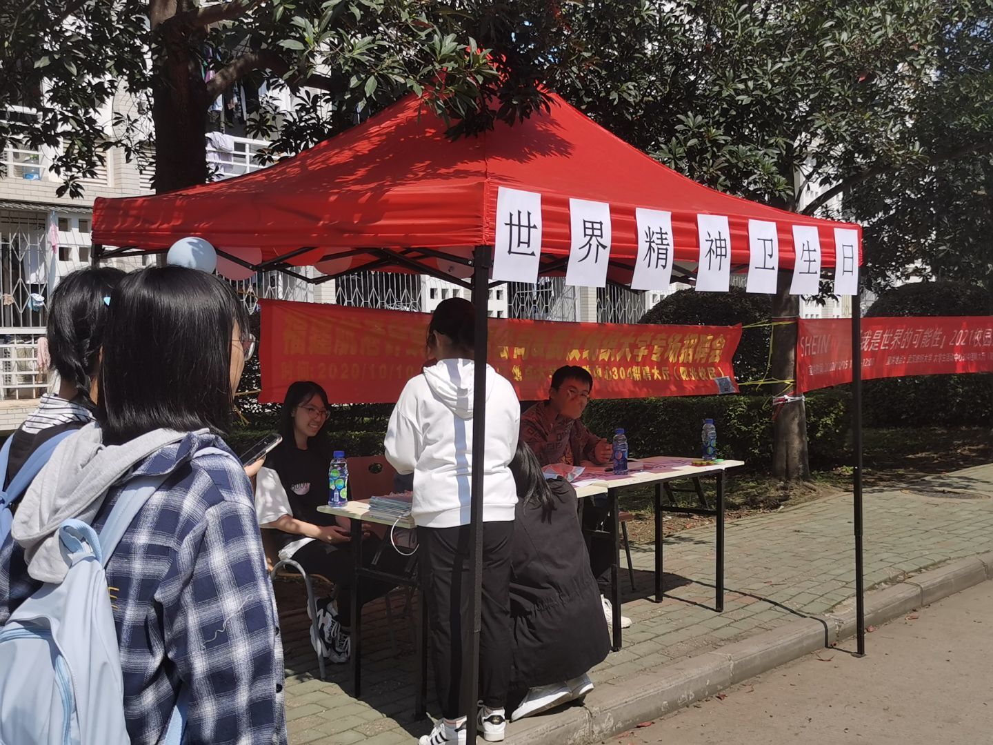 为增强同学们对2020年世界精神卫生日“弘扬抗疫精神,护佑心理健康”主题的理解,环境学院心理二级站于10月10-11日在一食堂侧门开展了“弘扬抗疫精神 关注自我发展”世界精神卫生日活动,吸引了往来的同学积极参与进来。